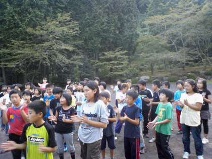 ひんやりとした外で始まりました。1日の感想として、ウォークラリーのつらかったこと、楽しかったことをたくさん聞けました。