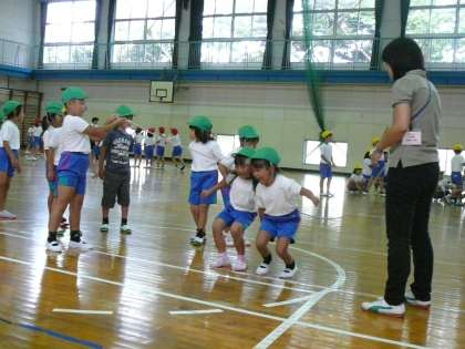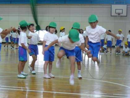 体育館で長なわに挑戦しました。大波・小波を跳んだり、二人組で跳んだり…。お兄さんやお姉さんみたいにたくさん跳べるようになりたいなと、みんな意気込んでいました。