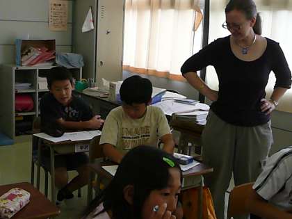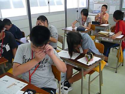 4年生の復習として、方向を示す英語をやりました。迷路を使い、相手へ右にいくつ、下にいくつと説明してゴールまでを道案内しました。うまくゴールまでたどり着き、ペアの子と喜んでいました。