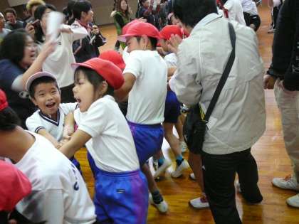 11月9日に市民体育館で行われた「沼津市合同運動会」に参加しました。つなひきやリレー、ジェンカなど体を思いきり動かしました。がんばったおかげで赤組優勝で、子どもたちも大よろこびです。