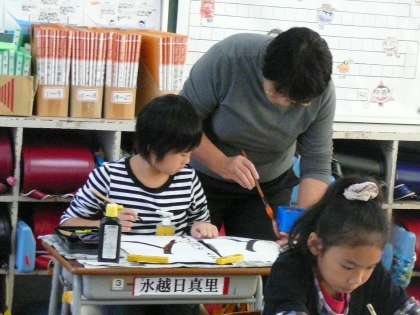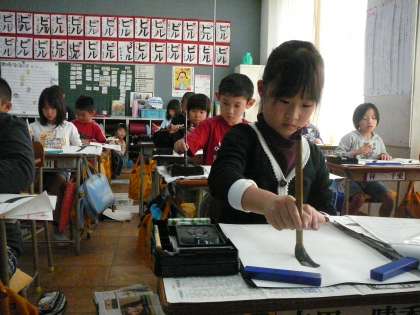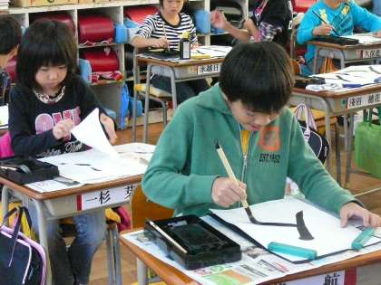 席書コンクールに向けて「人」を清書しました。3年生になって初めて筆をにぎりましたが、とても上達しました。名前まで気を抜かずに書きました。