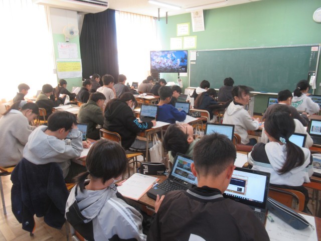 パソコンで調べ学習をしていたり、算数で合同な図形の特徴を調べたりしています。