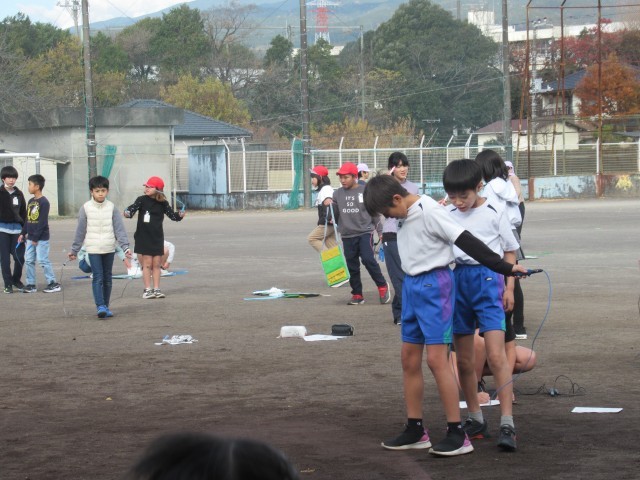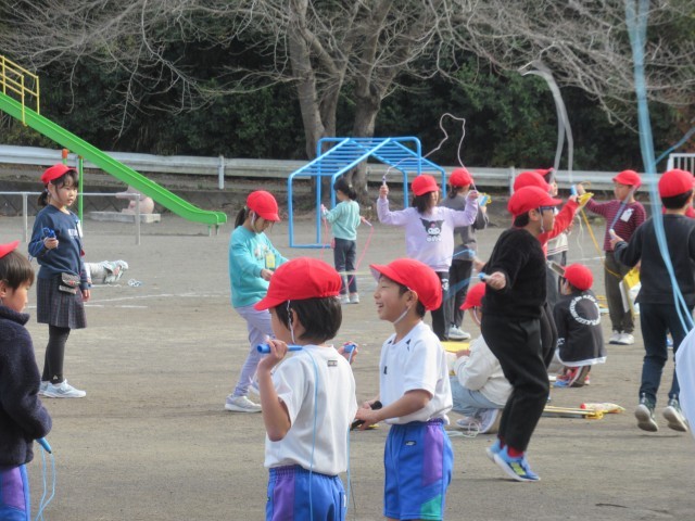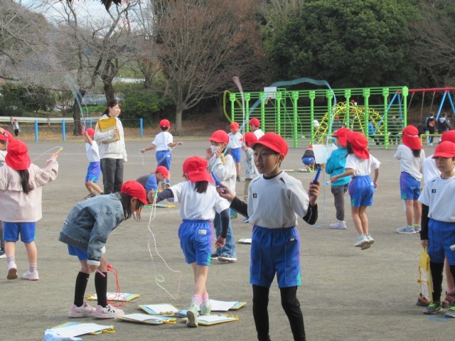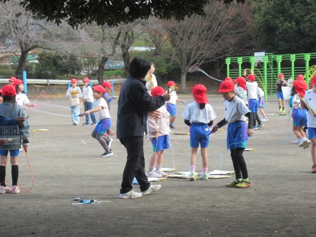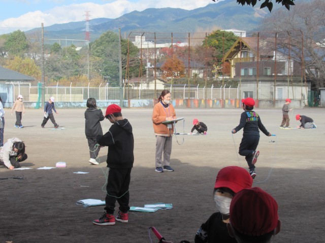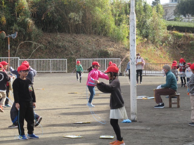今日も元気に縄跳びに挑戦しています。先生方に見てもらって、合格したら次の級に挑戦です!