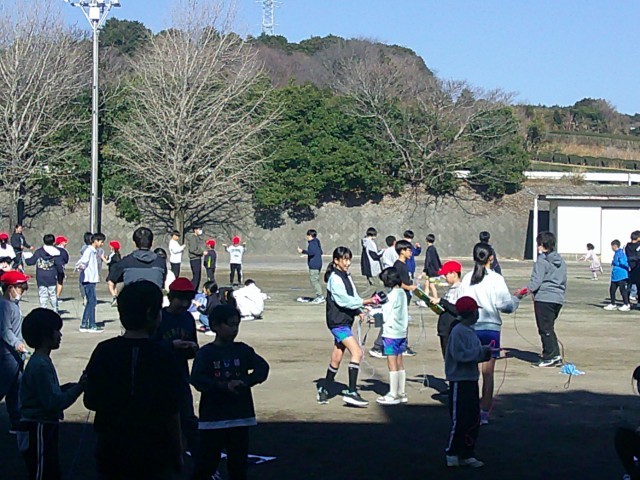 今日の昼休みも、縄跳び運動に勤しむ子が多く、先生方は技の検定に大忙しでした。