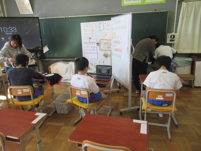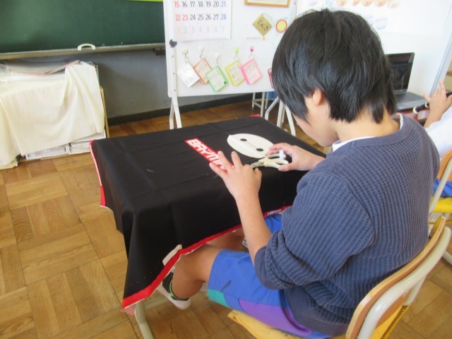 家庭科でエプロンづくりをしているところでした。アイロンがけも上手です。
