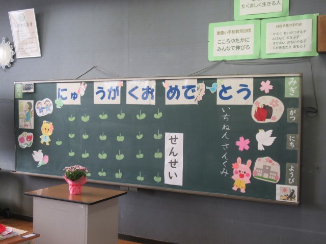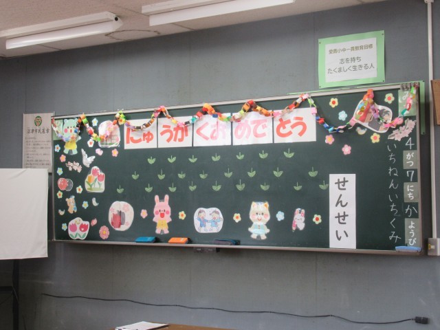 令和8年度の「入学式」が開催されました。予報では雨でしたが、時折パラッと降る程度でした。ピカピカの1年生は、保護者の方と受付を済ませ、歓迎の飾り付けが沢山の教室に向かいます。