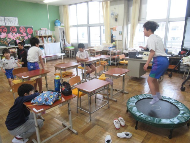 体を動かす活動をしていました。なかよし組には色々な用具があり、有効活用しています。