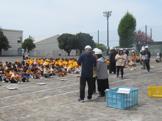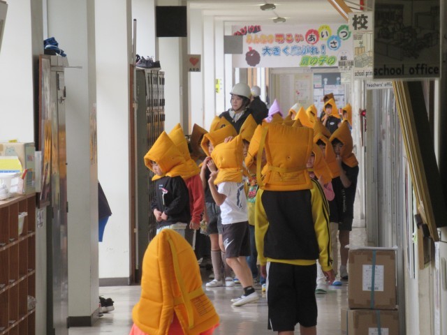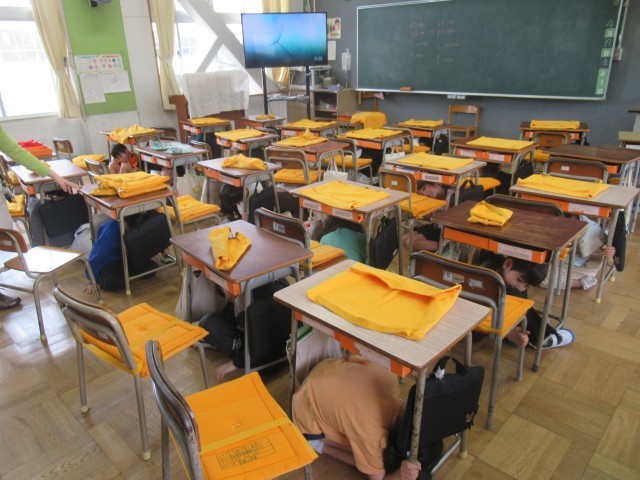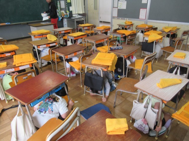 地震発生を想定した避難訓練を実施しました。素早く机の下にもぐる訓練、素早く整列する訓練、素早く運動場に移動する訓練を行いました。先生方は、人数確認、報告の訓練を行いました。今後も課題を改善しながら、安全・安心のために訓練を重ねていきます。