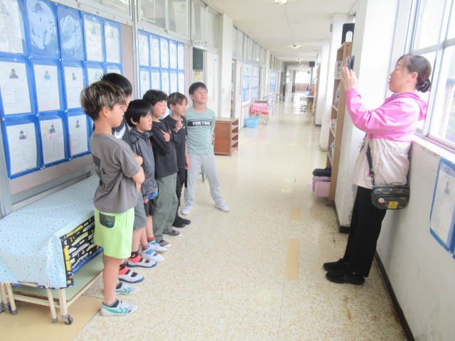 係活動のメンバーの写真を撮ったり、1時間目の授業の準備をしたりしているところでした。