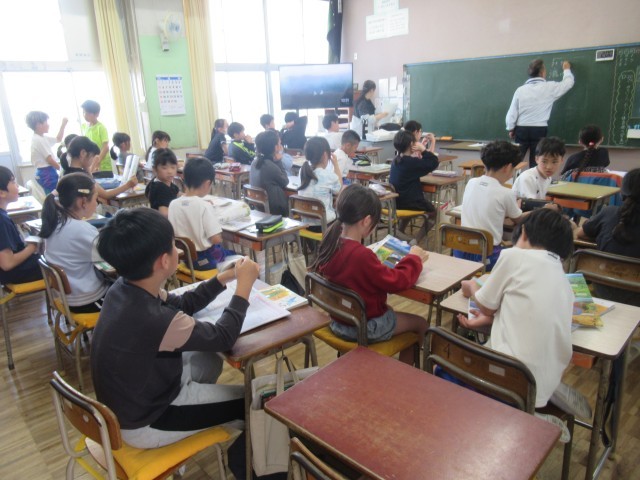 天気の授業でした。雲の出来方や、雲があっても晴れと呼ぶ事があることを学びました。