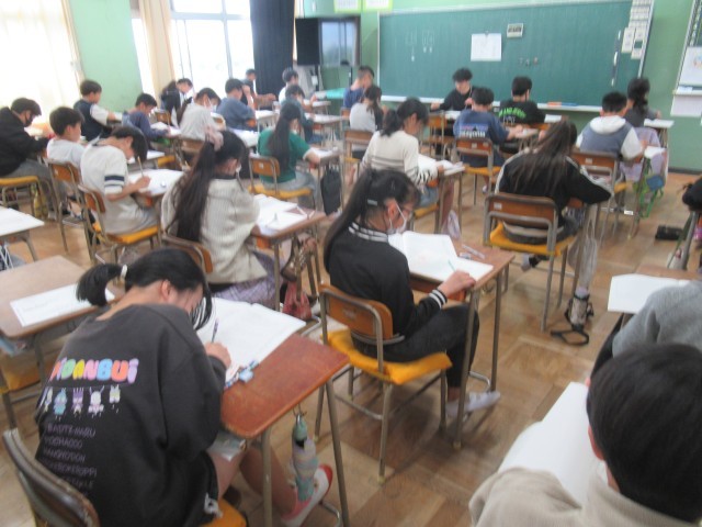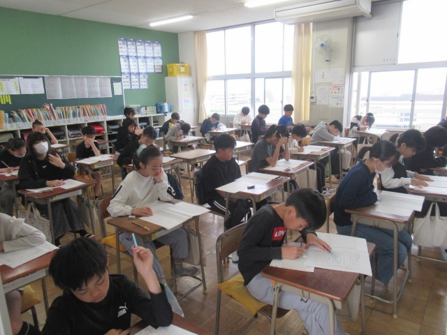 1・2時間目に学力・学習状況調査が行われました。国語と算数の全国テストです。集中して頑張りました。