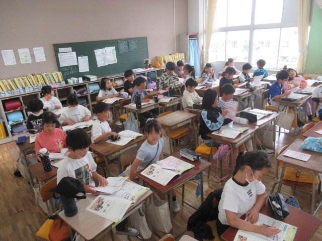 国語や社会の授業でした。聴く姿勢がとても良いです。集中している様子が伝わります。