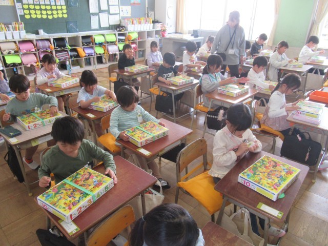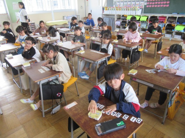 「10までのかず」の勉強です。1から10までのカードを使ったり、おはじきを使ったりして活動していました。