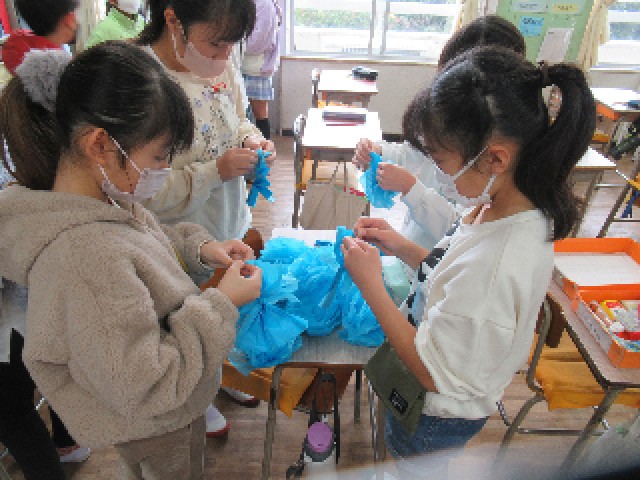学級の時間、みんなで分担して作業に取り組んでいました。6年生を送る会の飾りづくりも順調に進んでいるようでした。
