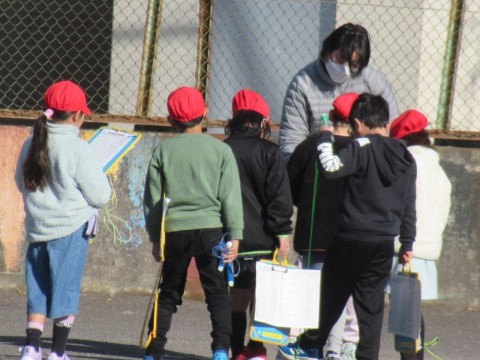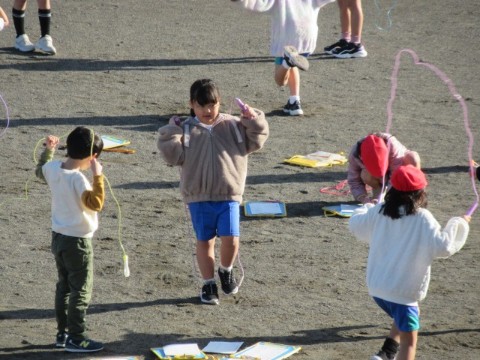 寒さに負けず、運動場でなわとび運動に取り組んでいました。カードも順調に進んでいるようです。