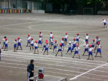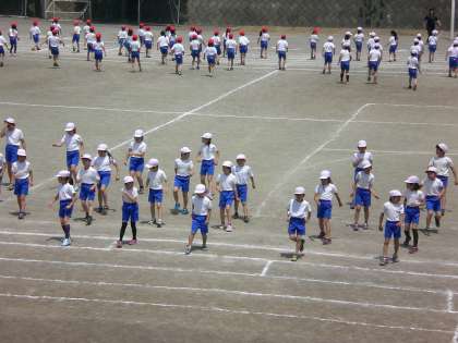 ワンピースの曲にのって、リズムよく表現運動をしました。