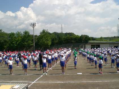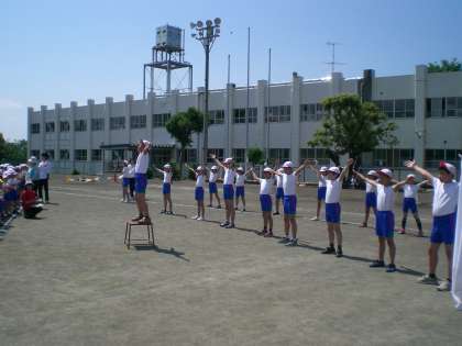 ラジオ体操の隊形を確認をした後、応援の練習をしました。