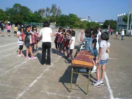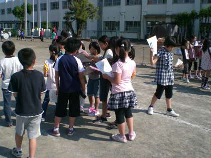 音楽係は伴奏を、放送係はアナウンスを、用具係は用具と分担の確認を…と自分の係の仕事に取り組んでいました。