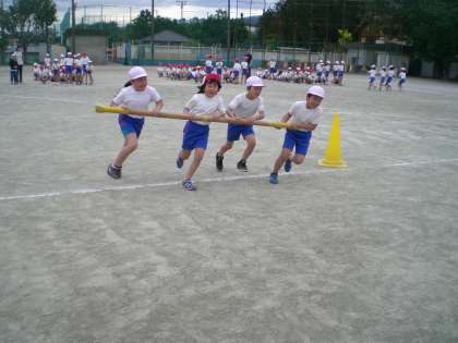 運動会が近づいています。3年団競のタイフーンの練習に力が入ります。各クラスで作戦を立てた成果を出そうとがんばっています。