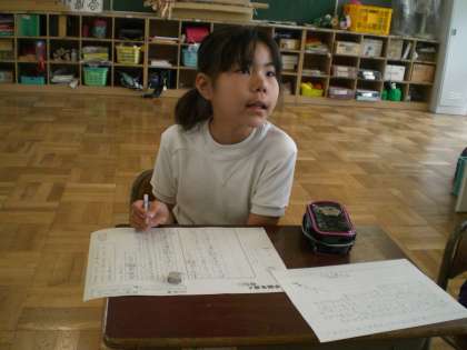 卒業生からお手紙をもらったので、お返事を書くために「手紙の書き方」を学習しました。自分のがんばっていること、運動会があることを伝えたいようです。心を込めていっしょうけんめい書いています。