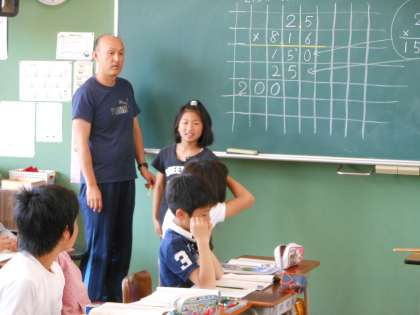 小数同士のかけ算の積を求めるとき、小数点の正しい位置をみんなで確認しました。