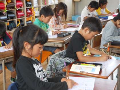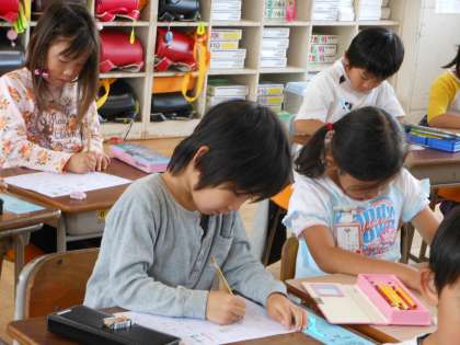 鉛筆の持ち方や姿勢に気をつけて書いています。
