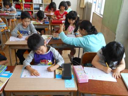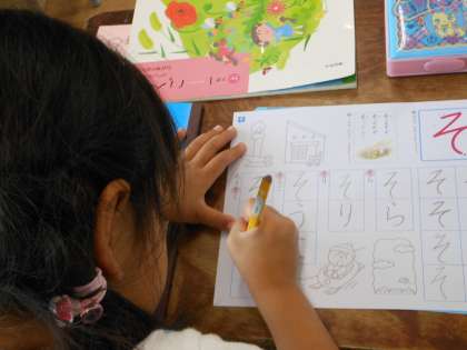 ひらがなの勉強にも慣れてきて、正しい字形で書ける子が増えてきました。
