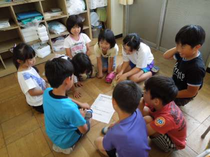 6月6日(水)、19日(火)の『ペアで遊ぶ会』に向けて、2年生と4年生がグループに分かれて、計画を立てました。