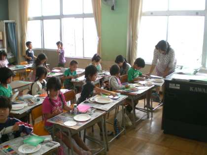 折り紙を切ったり貼ったり、クレヨンで色をつけたり…。