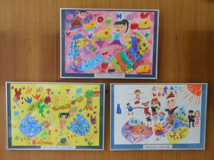 ギャラリー校長室に2年生の作品を3点展示しました。クレパスなどを使って描いた素敵で不思議なたまごの世界です。