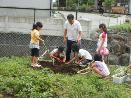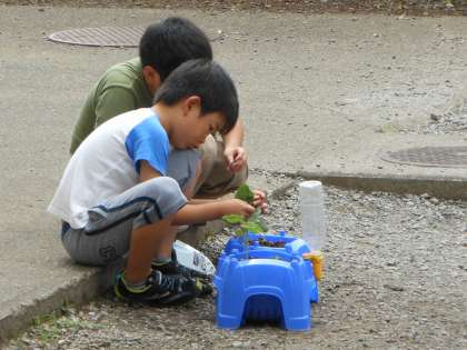 オクラとひまわりの苗が育ち、間引きをしなくてはならなくなりました。間引きした苗は、「3年3組農園」を作って、植え替え、育てることにしました。