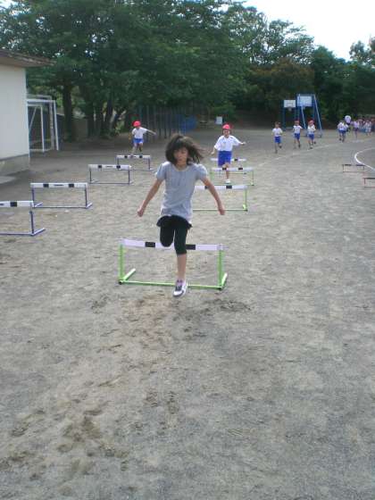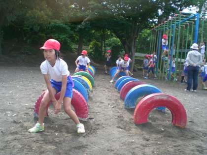 タイヤ跳びをしたり、ハードルを越えたり、リズムよく運動していました。