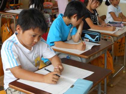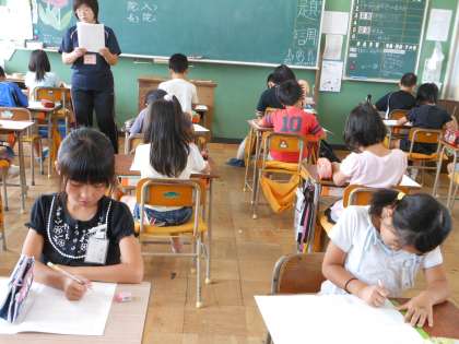 たのしい学校生活を送るためのアンケートを行いました。いろいろな質問に対し、4つの選択肢の中から自分がどれに当てはまるのか、みんな真剣に考えていました。