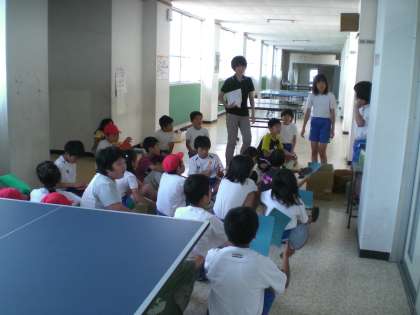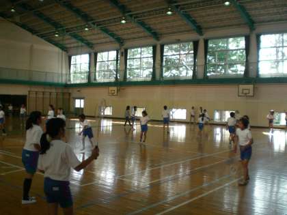 体育館ではバドミントンクラブとバスケットクラブが、廊下では卓球クラブが活動していました。