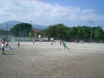 運動場では、ドッチボールクラブとソフトボールクラブが活動していました。