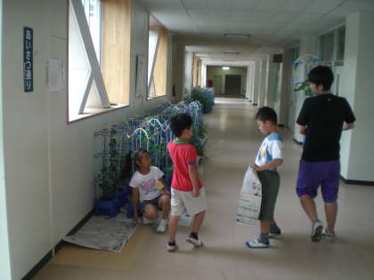 台風に備えて、2年生が野菜を避難させました。