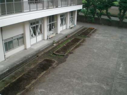 5年生前の花壇から、2年生の植木鉢が無くなりました。