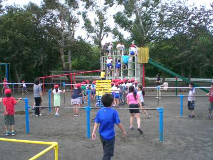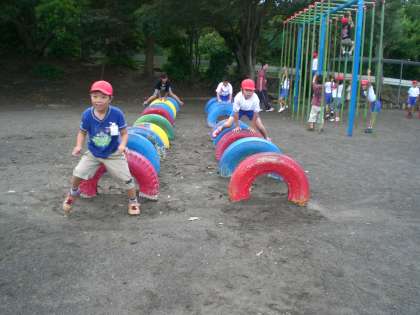 サーキットに取り組んだり、運動場を走ったりして体力づくりに取り組みました。