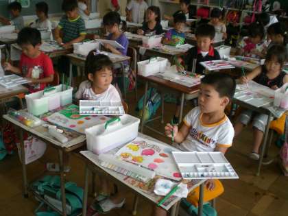 子どもたちは自分なりの色を作って、楽しく活動しました。