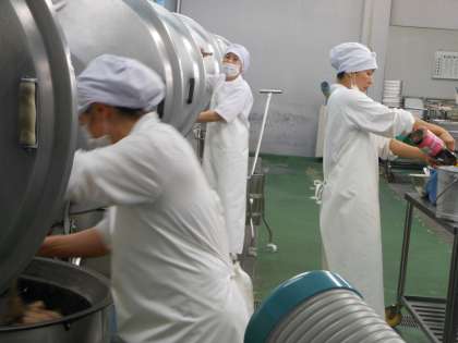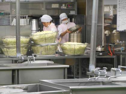 今日は1学期給食最終日です。給食室では、今日も子どもたちにおいしい給食を食べてもらおうと調理師さんたちが忙しく働いています。