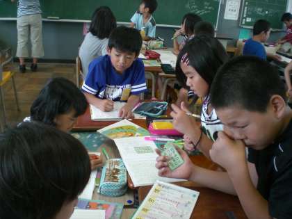 百人一首の短歌の中から、『月』『秋』『富士』について書かれたものを見つけ、自分のお気に入りの1首を選ぶ活動をしました。