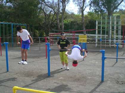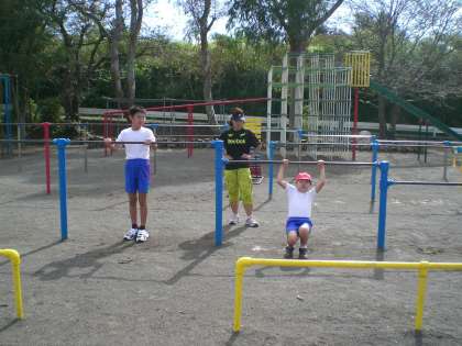 鉄棒をやっています。目指すは“逆上がり”なのですが、まだまだ遠い道のりです。