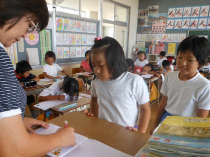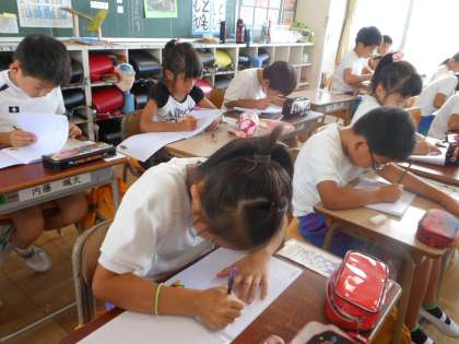 新しくローマ字の勉強が始まりました。4本の線を使って丁寧に書く練習をしています。だんだん書ける言葉も増えてきました。