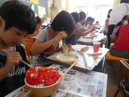 つやを出して、より本物に近づくよう、ニス特有のにおいに悪戦苦闘しながら、頑張って塗りました。
