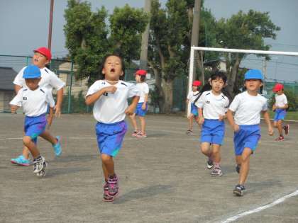 今日は低学年の子どもたちが朝運動に元気に取り組みました。
