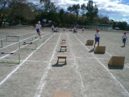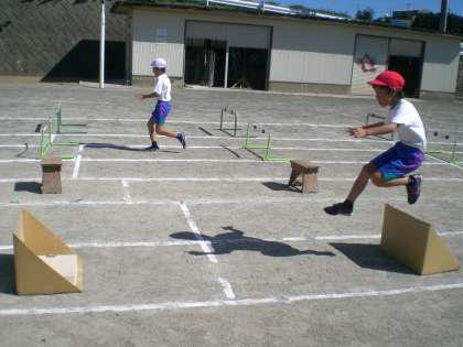 ダンボールでも、ハードルでも、リズムよくとべます。