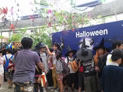 ハロウィンの仮装コーナーで一枚。夢の島熱帯植物園。