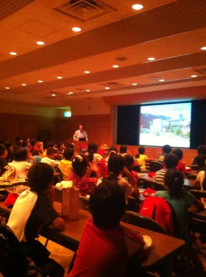 四年生は静かにガイダンスを聞いています。