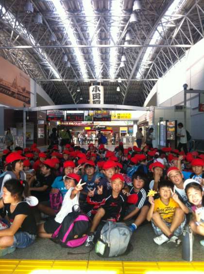 大きな小田原駅の提灯のまえで、はいポーズ!
