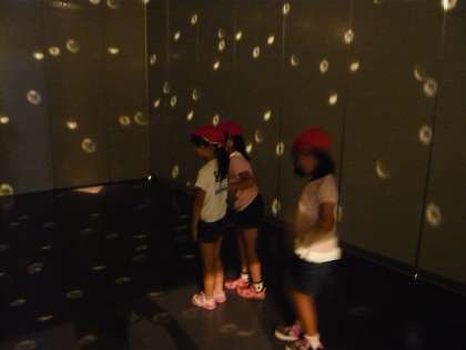 自分たちの顔を組み立てるパズル、動く光によって床が動いて見える不思議な部屋…。